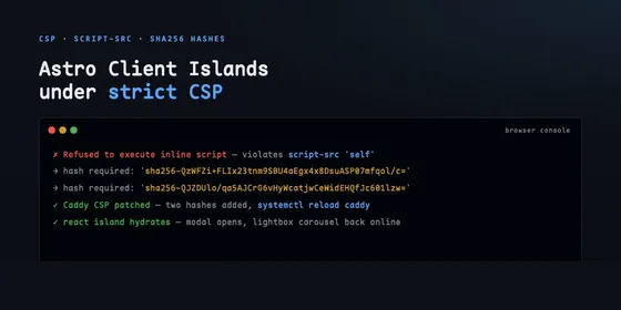 Wie ich meine Seite mit einer strikten Content Security Policy, sauberen Response-Headern und einer DSGVO-konformen Konfiguration gehärtet habe — und den Astro-Inline-Script-Stolperstein dabei gelöst.
